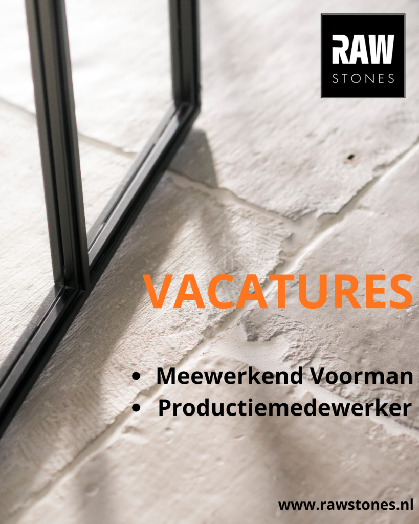 Ben jij iemand die graag met zijn handen werkt en trots is op wat hij maakt? RAW Stones is op zoek naar een gedreven productiemedewerker die meehelpt om onze unieke vloer- en wandtegels tot leven te brengen. Onze producten worden volledig in eigen huis vervaardigd, dit vindt plaats op onze productielocatie in Baarlo (LB). Hier werk je samen met een hecht team aan het produceren van onze karakteristieke producten.